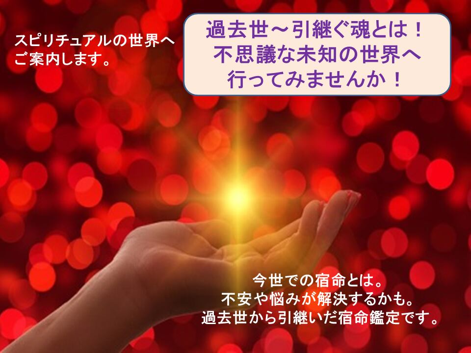 『過去世~引継いだ魂・今世の宿命とは!』スピリチュアルな不思議な世界へご案内いたします。